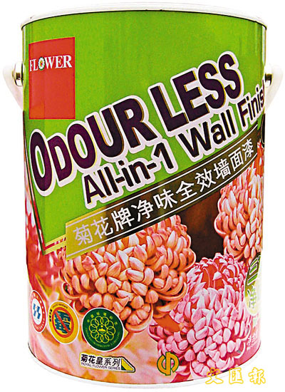 說到油漆,當然不得不提已屹立70年的中華製漆。最近他們推出了菊花牌淨味全效牆面AA漆,這油漆加入負氧離子空氣淨化系統,負氧離子含量高達6,600/cm3,仿如置身在鄉郊草原之中。中華製漆項目經理陳先生指出,這種漆油又有三重淨味功能,以淨味科技過濾99%的不良氣味,加上3小時快乾的功能,輕微的油漆氣味可在瞬間消失。