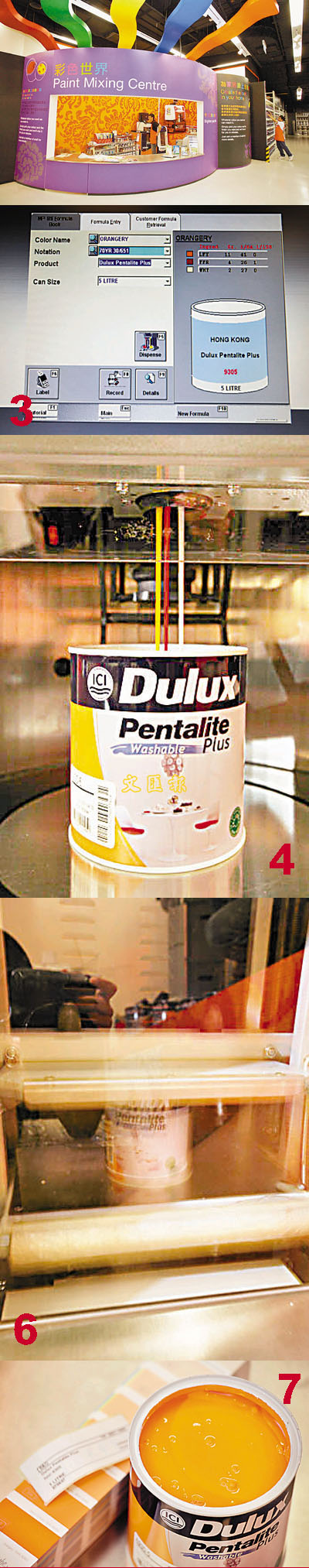 設在3樓的油漆調配中心以先進的電腦科技為顧客調配出心水顏色,今次得到B&Q的員工親身示範,只需15至20分鐘就可完成,名副其實快靚正。