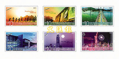 ■「香港特別行政區成立10周年」特別郵票顯現出彩虹效果,記錄了香港特區成立10年以來的重要發展和成就。