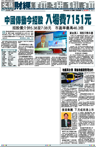 對於中國傳動以最高達46.3倍的市盈率招股,該公司執行董事兼主席胡曰明昨日透過視像會議表示,其以高市盈率招股的原因包括該公司這幾年高速發展,未來的發展前景看好,以及其保薦人摩根士丹利在保薦公司上市方面具有豐富的經驗,相信公司可以獲得投資者的認同。