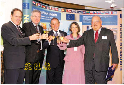 ■魯堂安(中)與其他歐洲國家駐港領事慶祝歐盟成立50周年紀念。