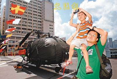 【本報訊】(記者 唐苗苗)停靠在尖沙咀海運大廈碼頭的法國「瓦爾」號補給指揮艦昨日開放,市民及外地遊客輪候上船參觀,並紛紛與艦上官兵拍照留念。有市民表示,由於「瓦爾」號不是戰鬥艦,配備的武器並不多,船上最值得一看的就是艦尾停放的雲雀Ⅲ型艦載直升機。
