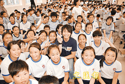 【本報訊】歌手陳柏宇、謝文雅昨日前往粉嶺出席「全港小學生職安小話劇比賽」及「職安健巡迴小學探訪活動」,向學生宣揚職安健訊息。