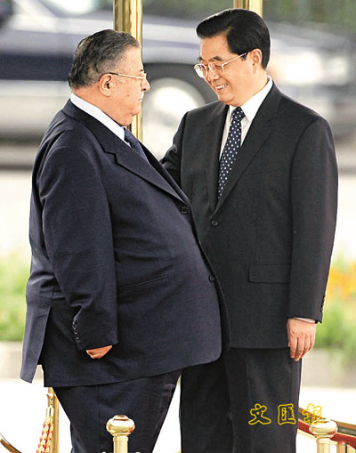 ■胡錦濤歡迎塔拉巴尼到訪中國。路透社