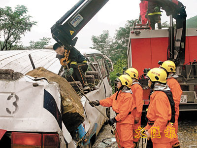 21日10時左右,重慶市萬州區一輛客車在鄉村公路上行駛時,被山上滾落下來的一塊巨石砸中,目前造成6人死亡。 新華社