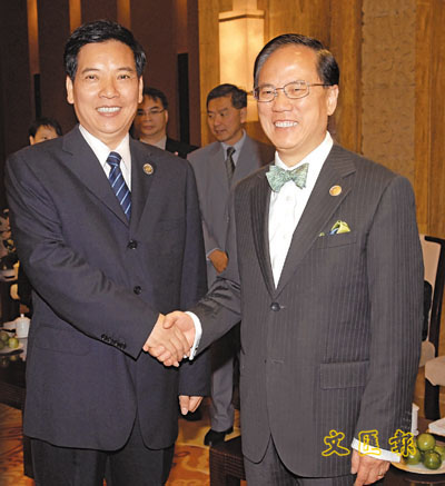 ■滇港兩地攜手優勢互補,從而防止邊緣化。圖為曾蔭權本月10日在長沙與雲南省省長秦光榮就泛珠合作框架下產業轉移會商。