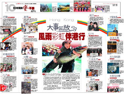 時光須臾,流年似水。十年前,維港側畔舉行的交接盛典上,飄揚了整整一個半世紀的米字旗匆匆降下,鮮艷的五星旗徐徐升起。那激動人心的一刻,還清晰得恍如昨日,轉眼間,香港特區已然誕生十載。