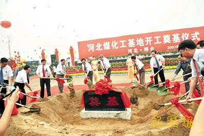 河北煤化工基地的6個子項目率先啟動。總投資達21.2億元的110萬噸焦化項目、年產20萬噸煤氣製甲醇項目、10萬噸粗苯加氫精製項目、年產30萬噸焦油項目及鐵路專用線項目投產後,預計可實現產值25.2億元;預計總投資7400萬元的「河北煤化工工程技術研究中心」亦同時正式揭牌成立。