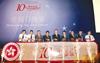 成都是香港特區政府在內地舉辦慶祝回歸系列活動的首站。成都慶祝活動為期兩天,今天舉辦包括香港專業服務研討會、10周年圖片展、文藝表演暨酒會、慶典儀式及晚宴等內容的「香港日」活動,22日將舉辦內地企業利用香港進軍國際市場研討會。
