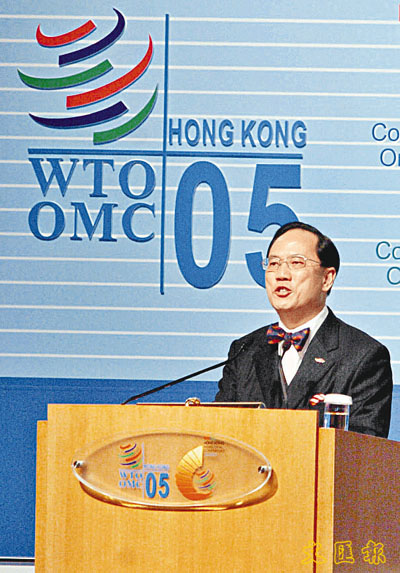 世貿組織第六次部長級會議於2005年12月13日至18日在香港舉行。香港既要招待好總共一萬多名來賓,還要應對來自世界各地的數千名激烈反對世貿的示威者。這一切實屬不易,但香港做到了。香港成功舉辦世貿會議,完成了多哈回合談判的關鍵階段,為全球自由貿易進程作出了重大貢獻,贏得舉世讚賞。