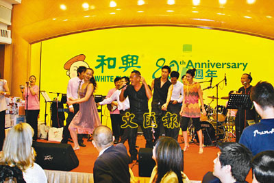 和興白花油80周年誌慶,行政總裁顏福偉與其私人樂隊載歌載舞。