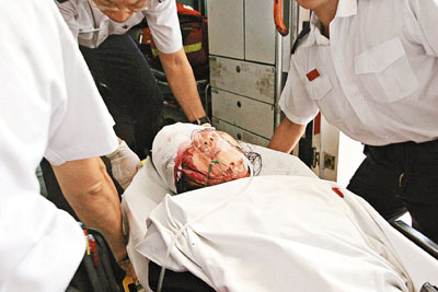 【本報訊】馬鞍山耀安h昨午發生倫常血案。一名疑患有精神病的青年,要求找母親期間與胞姊發生爭執,有人一怒之下取出掃把向女事主兜頭拍打,女事主閃避時墮地,頭部撞及門口的門檻石階,當場頭破血流昏迷,街坊發現報警;由救護員將傷者送院,警員則以傷人罪名將涉案青年拘捕。