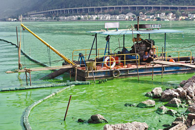 【本報記者鍾小強昆明25日電】近日因氣溫較高,雲南滇池再次爆發藍藻潮。由於藍藻大量繁殖,岸邊的湖水變得如綠油漆一般,散發出陣陣腥臭味。滇池管理局工作人員25日證實,滇池確實存在藍藻爆發現象,但在正常範圍之內,另外,昆明市民的飲用水安全不會受到影響。