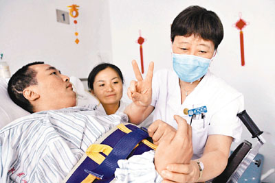 為便於照顧丈夫,羅妻羅映珍現租住在醫院附近的一個小屋中,從清晨6點鐘至夜晚9點時刻守護在丈夫床前。因為羅映珍堅信自己的愛和全國人民的關心一定能喚回丈夫的康復。在妻子的精心照料和醫護人員的努力下,羅金勇奇跡般恢復知覺,於本月8日轉至首都醫科大宣武醫院治療。如今,協助康復專家對羅進行語言、肢體等康復訓練。