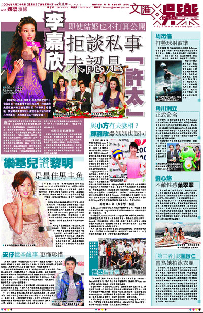 嘉欣跟男友許晉亨從外地慶祝完生日返港,接機時發現嘉欣無名指戴上戒指,因而引來結婚的揣測,可是昨日於活動上,嘉欣無名指空空如也,記者趁機問嘉欣這位「許太」今次是否婚後首項工作?嘉欣語調平淡表示:「係生日後第一個工作,其實生日之前已經好忙,之後又接了工作,才趁著幾日空檔去旅行。」是否真的已秘密結婚?嘉欣才笑著謂結婚、懷孕、分手已經傳過不少了,甚麼也傳得出來,根本不用去解釋太多。那許生有否求婚?她即封口表示私人問題不作回答,不過她卻坦言即使結了婚也沒打算公開。記者繼續不休地問應否改口叫「許太」?嘉欣則強調:「還是叫我Michelle啦!」