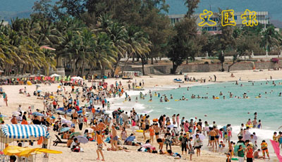 ■海南三亞大東海景區遊人如織。