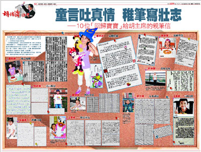 回歸寶寶們天真的願望,盡在這簡單樸拙的字句裡。寶寶們更希望,能夠把他們童真洋溢的信件交到胡主席手中。
