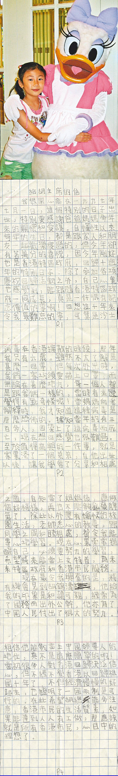 特區10齡兒童言寄胡總 (圖)
