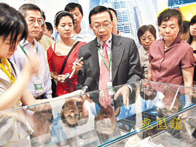 【本報北京新聞中心記者劉凝哲、實習記者林曉東28日電】香港特區駐京辦主任曹萬泰今日上午一早就出現在展覽現場,親自為媒體當導遊。主辦方體諒媒體,分「國、粵語」兩批媒體參觀團,由曹萬泰分別用國、粵語為媒體講解。