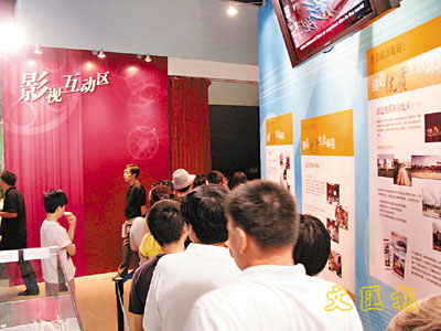 【本報北京新聞中心記者劉凝哲、實習記者林曉東28日電】在展覽廳一角,主辦方闢出一個攝影棚,佈景均是香港著名的景點,觀眾可在此拍照留念。這成為展覽中最火爆的區域,很多觀眾排隊長達半小時,僅為「以香港為背景來一張」。據統計,有超過千人曾在拍照區留影,幾乎佔觀眾總數的1/5。
