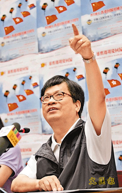 ■鄭耀棠表示,7月2日是否能夠順利表演跳傘視乎天氣狀況。 本報記者曾慶威 攝