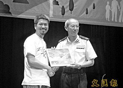 ■正生書院校長陳兆焯(左)接受警務處新界北總區指揮官張肇華的感謝狀。 本報記者陳朗昇 攝