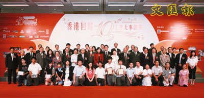 ■香港回歸十周年十件大事評選頒獎禮日前舉行。圖為全體得獎者與嘉賓合影。