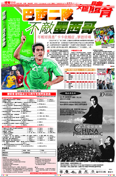 【綜合外電】以「第二梯隊」出戰的巴西隊昨晨在美洲國家盃B組首戰失利,慘吞墨西哥2蛋,主帥鄧加去年接掌巴西隊以來首次在正規比賽遭逢敗績。在有朗拿甸奴與卡卡請假避戰下,巴西隊今仗就只得洛賓奴一個在努力,其餘一眾年輕人都只是在場上夢遊,整隊都像患上了「卡卡依賴症」一樣。