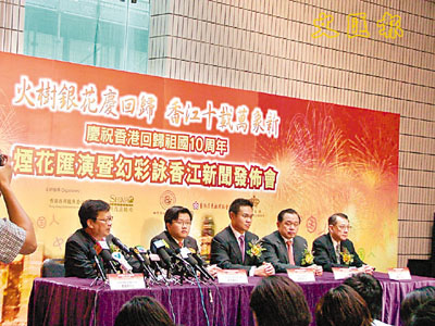 將於明晚舉辦的回歸煙花匯演,主題是「火樹銀花慶回歸,香江十載萬象新」,整個煙花匯演歷時約23分鐘,圍繞香港回歸祖國十周年的主題,共分為「歌唱祖國」、「中國人」、「絲綢之路」、「明日恩典」、「奧運夢」、「美麗花園」、「漁舟唱晚」、「東方之珠」、「始終有你」、「保衛黃河」等10幕。