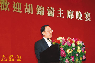 ■曾蔭權在歡迎國家主席胡錦濤晚宴上致辭。