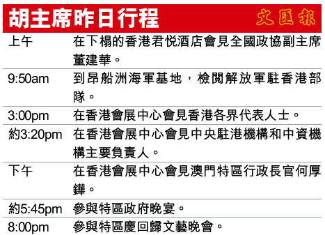 胡錦濤﹕不論信仰階層 包容共濟建港 (圖)