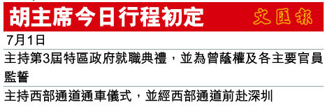 胡錦濤﹕不論信仰階層 包容共濟建港 (圖)