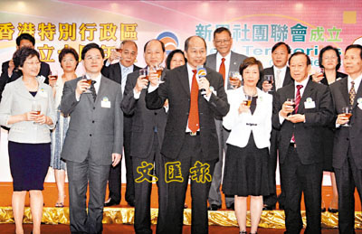■新界社團聯會舉行慶祝回歸10周年晚會,賓主在儀式上祝酒。本報記者潘政祁 攝