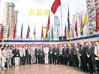 ■九龍總商會領導在該會會所平台升旗,慶祝香港回歸祖國10周年。