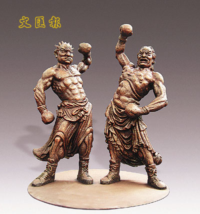 充滿陽剛氣息的作品,不禁讓人聯想到中國神話中的「亨哈二將」。