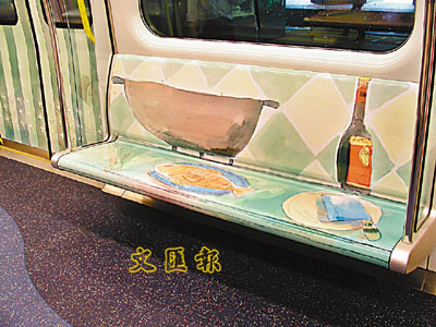 除了西鐵車身外,還有東鐵的車廂。「我喜歡有一卡車廂用上了中國水墨來畫,另外一卡用上了西方手繪畫的簡單線條,形成中西合璧的效果。」阿John講及自己認為最滿意的一部分,猶如在中西合璧的藝術文化中遊覽;三位年青人曾經歷香港從殖民統治到回歸祖國階段,「中西合璧」可能是他們對這個城市最深的感受。