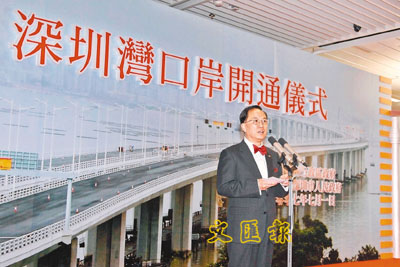 他指出,深圳灣公路大橋兩座斜拉橋的橋塔互相仰向對方,標誌著深港民眾更加緊密團結起來,邁向繁榮;同時,深港工作人員在同一口岸大樓內為雙方民眾服務,更突顯了香港與深圳兩個毗鄰相連的城市雙贏共進的決心,雙方的積極配合與合作可謂為今後的大型跨境基建項目奠下了良好的基礎。