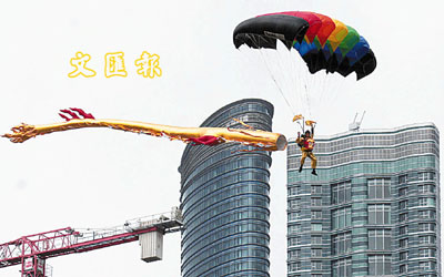 ■跳傘放出金龍,展現中華龍圖騰。本報記者曾慶威 攝