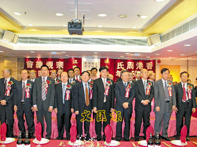 永遠會長周炎沐、周儀、周漢彬、周國材;當屆會長周楚階、周國牧;榮譽會長周厚澄;理事長周修忠,副理事長周和熙、周桂洪;監事長周遠豐,副監事長周厚立出席就職禮。