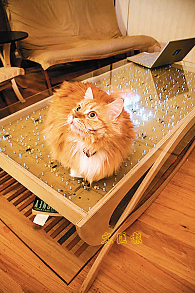 The Wave茶几的底裝上32個紅外線感應器,只要在感應器上移動,附近的LED燈便會亮起。全張檯一共有480個LED燈,跟著物件閃,有光又有feel。另外還有Ripple咖啡檯,道理也是一樣,在玻璃或膠檯面下,也是有很多盞LED燈,只要放物件上去,燈就會自動亮起。