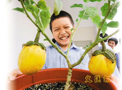 經過半年的栽種,基悅小學收穫的太空茄子要比棒球還大,辣椒亦超過十幾厘米。主持種植工作的教導主任朱國強表示,學校擬於下周畢業禮時舉行豐收宴,炮製魚香茄子煲,讓大家辛苦一番後能吃上自己種植的瓜果。