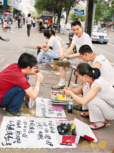 ■雖然發生二手機電池爆炸奪命事件,但蘭州市面仍隨處可見非法售賣二手機的攤檔。本報記者王岳 攝