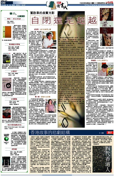 「這本書更具焦點的,是董啟章個人文藝歷程的回顧。書裡大概有三分之一的篇幅,是與九十年代以來香港文藝界相關的,探討的也是香港與創作相關的問題。」