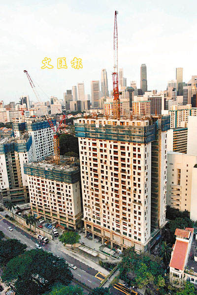 ■新加坡資政李光耀表示,欲與香港爭一日之長短,樓價需防過熱。圖為新加坡興建中的住宅建築。 資料圖片