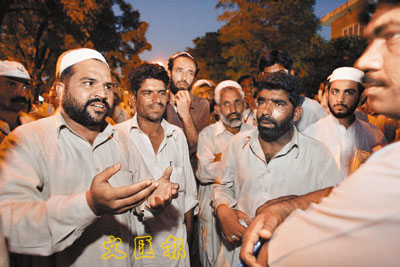 ■被挾持人質的家屬焦急地在清真寺外等候消息。 美聯社