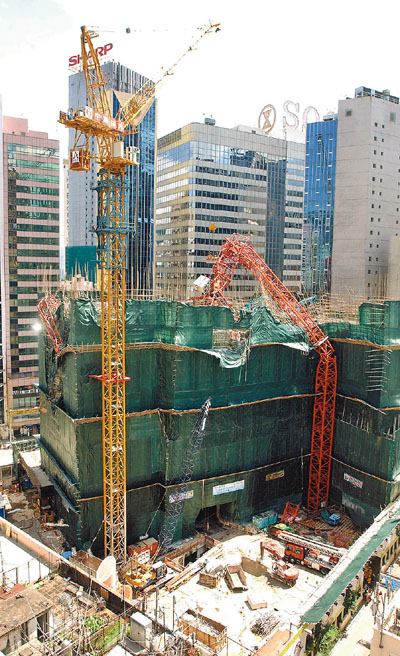 ■軒尼詩道巨型天秤斷裂,倒塌在地盤九樓平台。