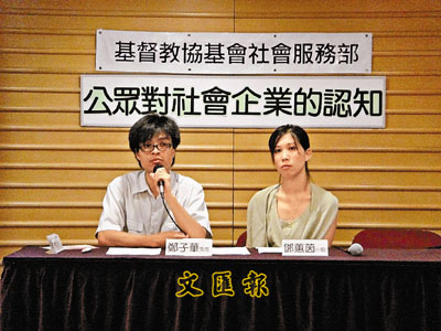 ■基督教協基會註冊社工鄭子華(左)認為,政府應加強宣傳以提升社會企業的知名度。本報記者唐苗苗 攝