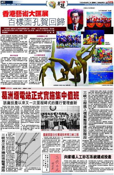 由香港文化藝術推廣協會主辦,文匯報、大公報共同協辦的「香港藝術界慶祝香港回歸10周年大匯展」的第二部分展覽,由即日(12日)起在香港中央圖書館開展。