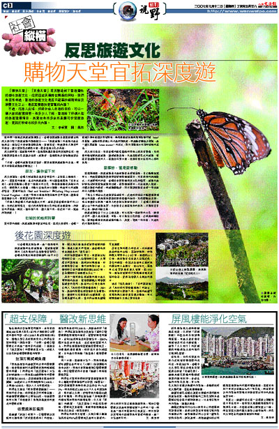 不過,從港人出埠,抑或外地人來港的目的,可以一窺大家的遊覽視野。有多少人了解,香港除了所謂大型的旅遊發展項目,其實也有很多自然景觀可作深度旅遊,更能反映城市的多元內涵。