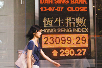 從05年7月初到昨日,美元兌歐元下跌了13.3%,兌澳洲元下跌14.7%,兌英鎊下跌了16%,兌人民幣下跌了8.5%,這表明港元對於世界主要貨幣在兩年之間貶值超過12%。由於港幣與美元掛鉤,港元隨美元大幅下跌,有利於消減香港高租值、高地價、高工資所帶來的競爭力下跌問題。